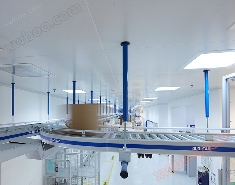 ● 针对地面狭窄、异形场地、空间不足等特殊情况,欧力德箱式输送线也可采用吊装设计,实现货物的空中平稳运输。