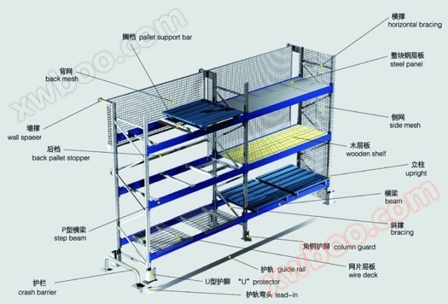 横梁货架的出现率是的,它是仓库当中的主角,所有有过仓管经历的人都知道,并且也了解它的。从简单的来讲,它就是一种结合托盘使用的货架,既可以放置大量不同的货物,又可以放置小量多种的货物,是很经济实用的仓库设备。它一般高大概是十二米左右,即使现在有些仓库已经高达三十米了,但传统重型托盘式货架的高度也不会超过十二米的。它可以分成三到五层来放货物,放货物架子的深度一般是一米左右,是与货物的安放率相当的。